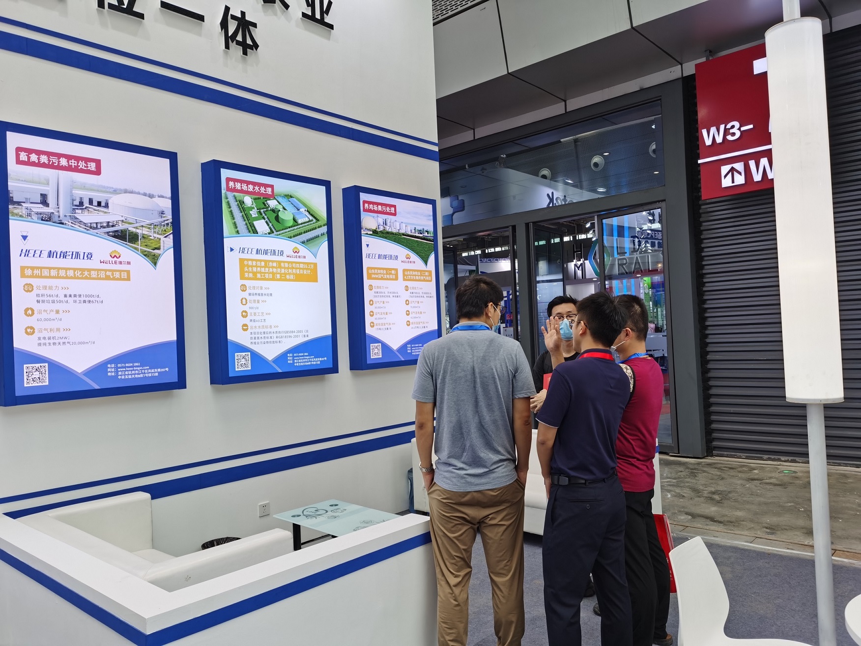 此次杭能環(huán)境采用“動+靜”的表現(xiàn)方式,通過工程項目視頻和設(shè)備案例燈箱,展示了公司在養(yǎng)雞場糞污處理、養(yǎng)豬場廢水處理、牛奶加工廢水處理和畜禽糞污集中處理等業(yè)務(wù)領(lǐng)域取得的成績,并展示了有機(jī)廢棄物處理“環(huán)境保護(hù)+清潔能源+碳減排+循環(huán)農(nóng)業(yè)”四位一體解決方案。也讓現(xiàn)場觀眾對杭能的專業(yè)設(shè)備供應(yīng)、有機(jī)廢棄物整體解決方案、成套技術(shù)研發(fā)創(chuàng)新和生物質(zhì)能源工程建設(shè)有了充分了解。
