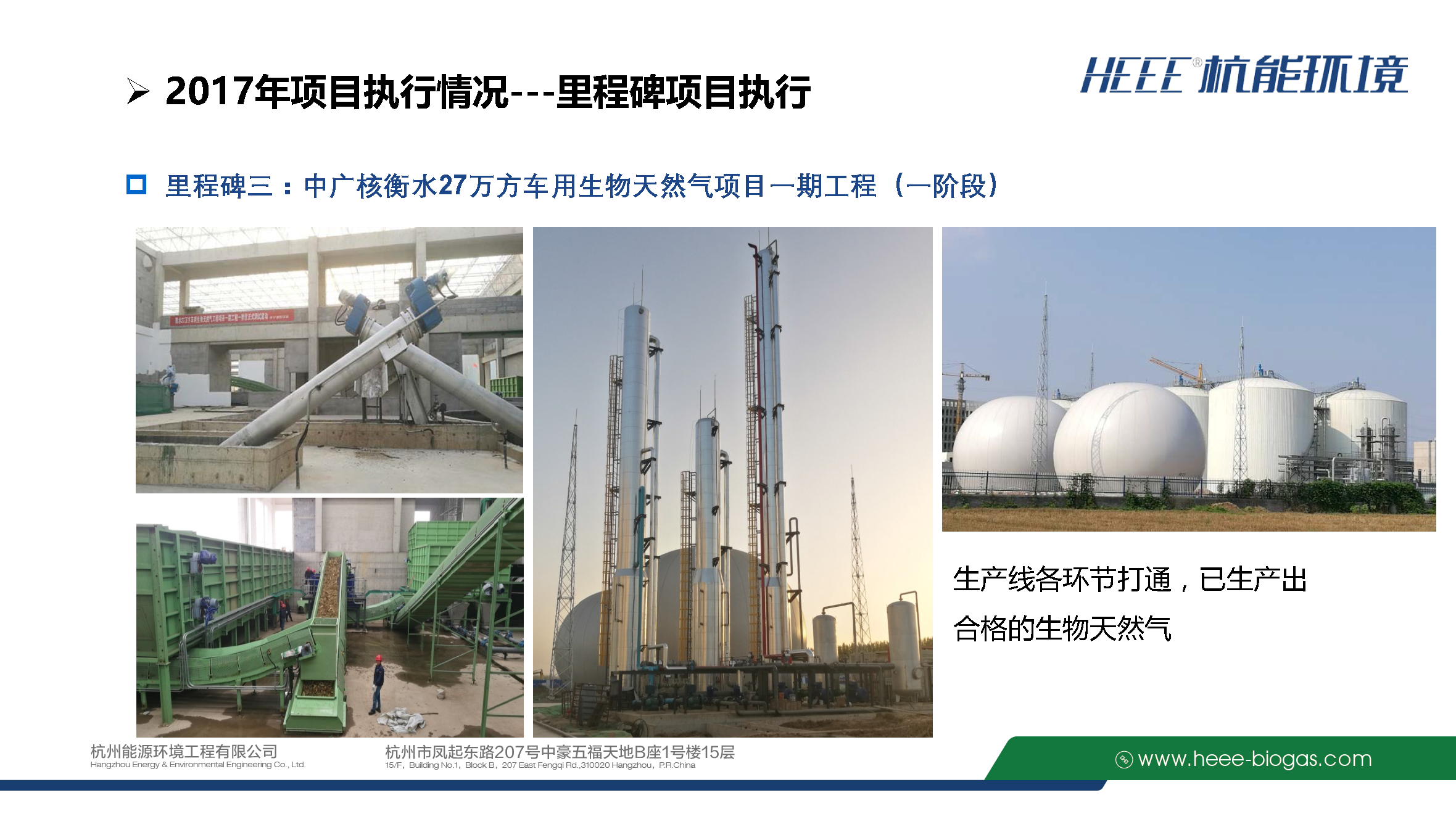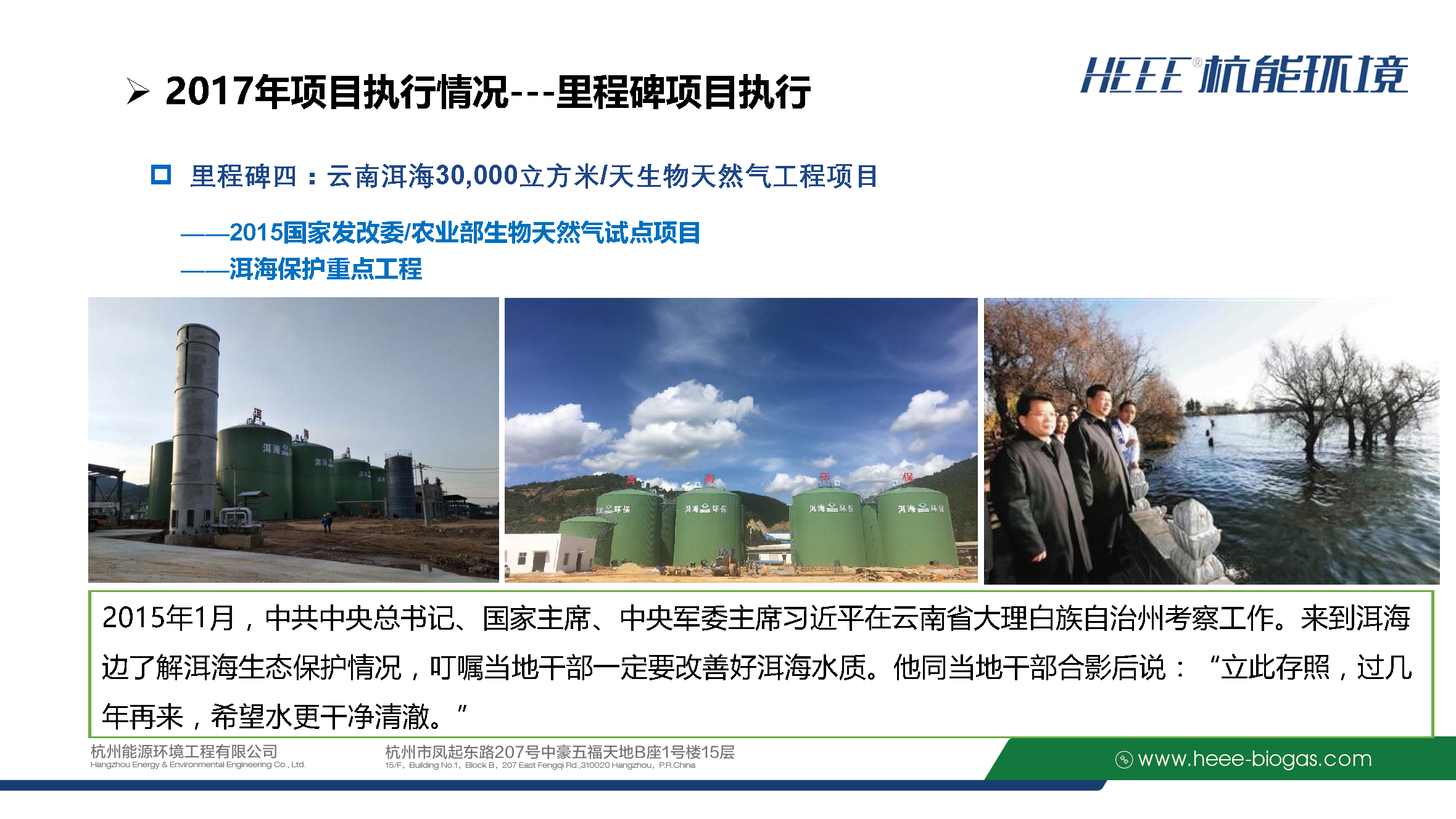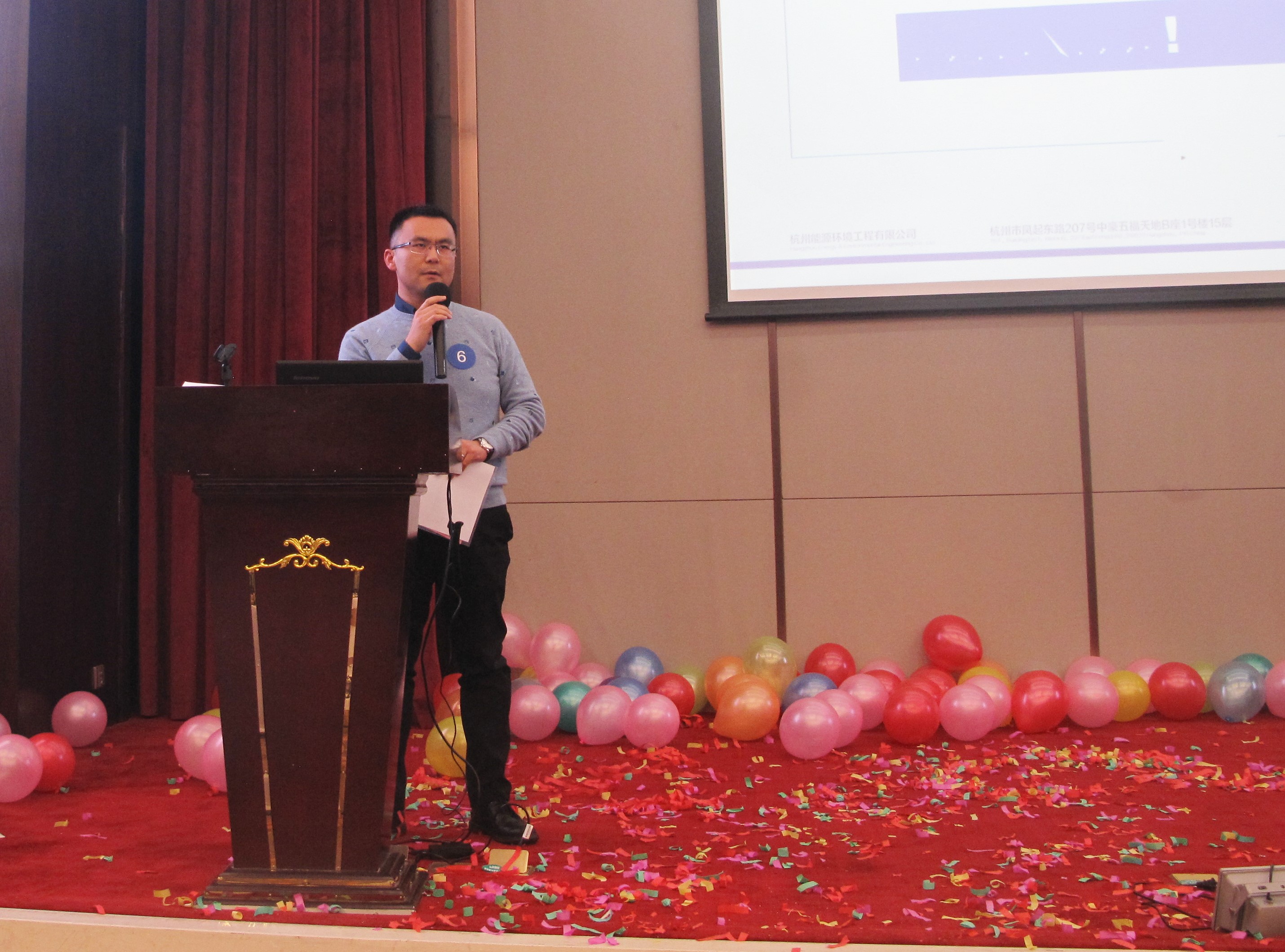 宴會正式開始后,杭能環(huán)境總經(jīng)理壽亦豐作2017年杭能環(huán)境業(yè)績總結(jié)和2018年工作計劃報告?;仡?/span>2017,壽總談到,去年杭能環(huán)境陸續(xù)開工建設(shè)了23個項目,其中包含4個具有里程碑意義的項目:1)陜西梁家河現(xiàn)代循環(huán)果業(yè)示范園區(qū)沼氣發(fā)電示范工程、2)湖南岳陽楓樹灣12000立方米/天生物天然氣項目、3)中廣核衡水27萬方車用生物天然氣項目一期工程(一階段)、4)云南洱海30,000立方米/天生物天然氣工程項目,這些項目都凝聚了每個項目團隊的努力付出,也充分彰顯了杭能環(huán)境的技術(shù)實力。