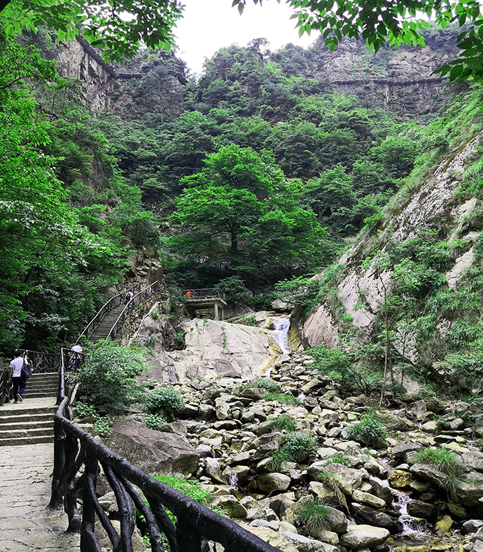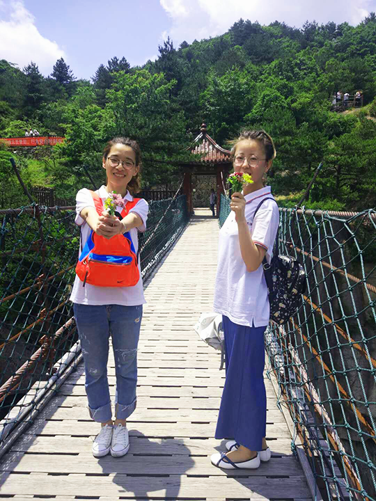 稍作休息,待體力恢復(fù)后。大家又踏上了歸途。映入眼簾的就是長長的懸空棧道,橫在崇山峻嶺之間,宛如腰帶盤繞。小伙伴們手拉著手,放聲高歌,向著目的地共同前進(jìn)!