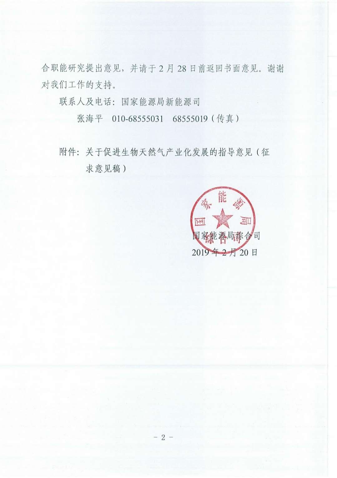 國家能源局下發(fā)《關(guān)于促進生物天然氣產(chǎn)業(yè)化發(fā)展的指導(dǎo)意見》征求企業(yè)意見
